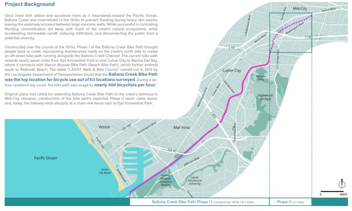 “Finishing the Ballona Creek Bike Path will resolve some of our City’s mobility issues, connecting the Pacific Ocean through Culver City and into Mid-City,” Hutt noted in a statement to Streetsblog. “Studies have shown that the completion of this project will create safer streets for communities with high transportation needs, bolster our City’s socioeconomic and environmental health, and provide a secure space for Angelenos everywhere to gather and exercise.”