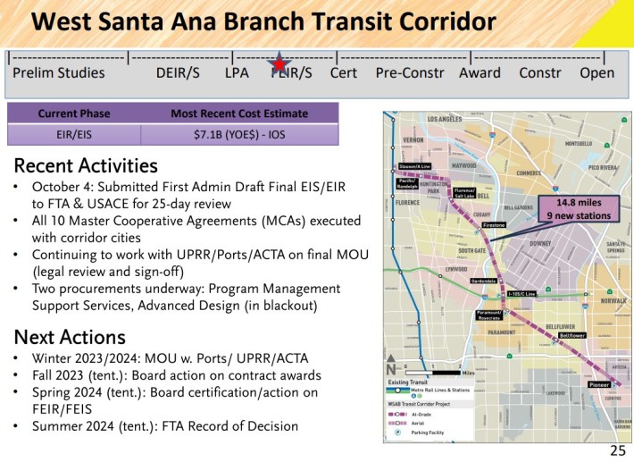 If all goes well (extrapolating from Metro’s January 2022 draft timeline), a Southeast Gateway Line groundbreaking might take place 2025-26, with the line opening to the public around 2034-2036.