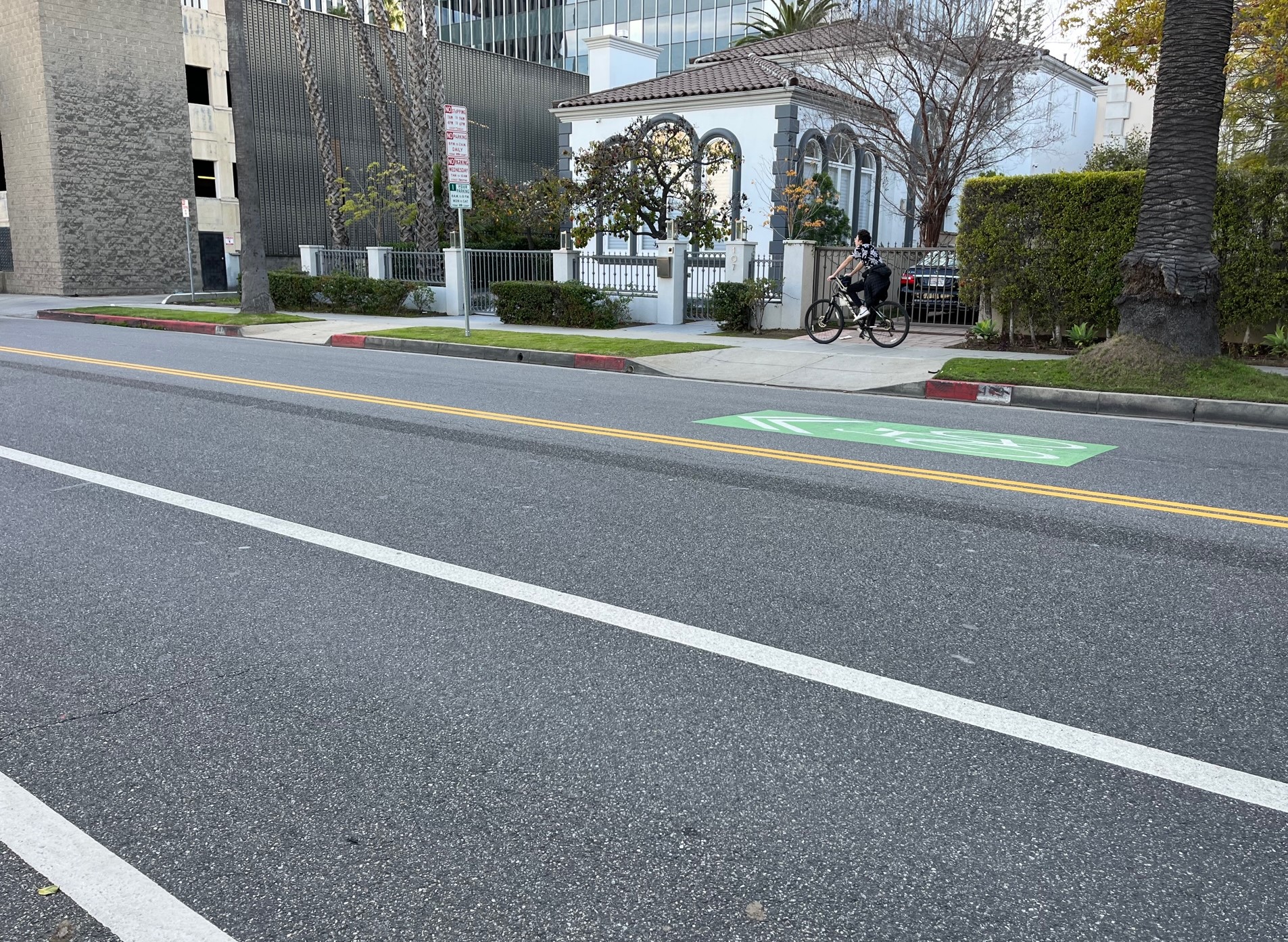 In 2023 Beverly Hills installed one mile of bikeway on Doheny Drive, basically from Burton Way to Whitworth Drive, with a one-block gap south of Wilshire Boulevard.