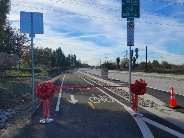 In the meantime, the admittedly short strip of protected bike lanes add another connection in the existing bike path network in and around the Whittier Narrows. The narrows is essentially a confluence of two rivers – the Rio Hondo and the San Gabriel – so it’s also the intersection of the county’s longest bike paths which run along those waterways.