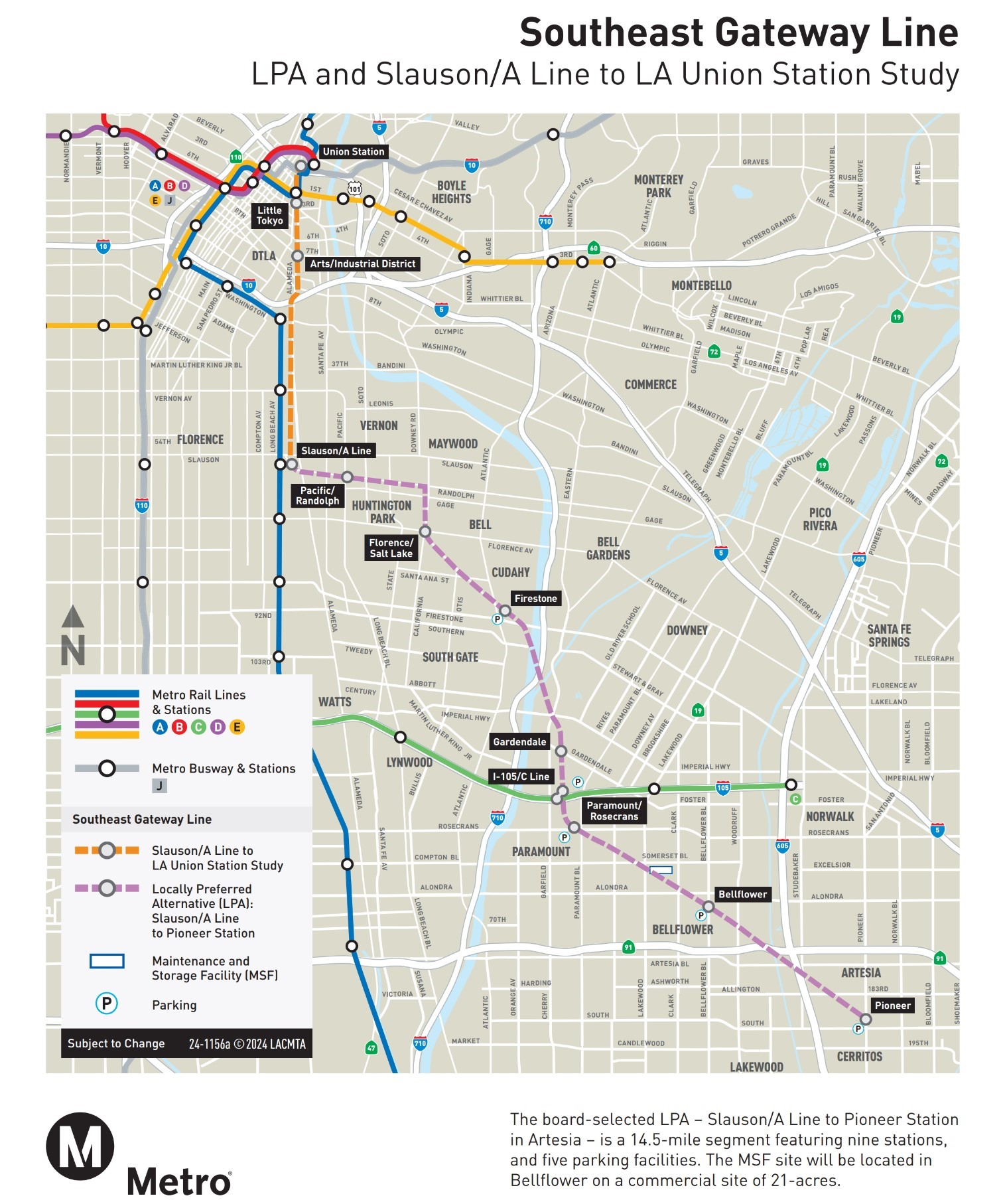 In 2022, Metro decided to initially build just the lower 15-mile section from the Slauson A Line Station to Artesia.