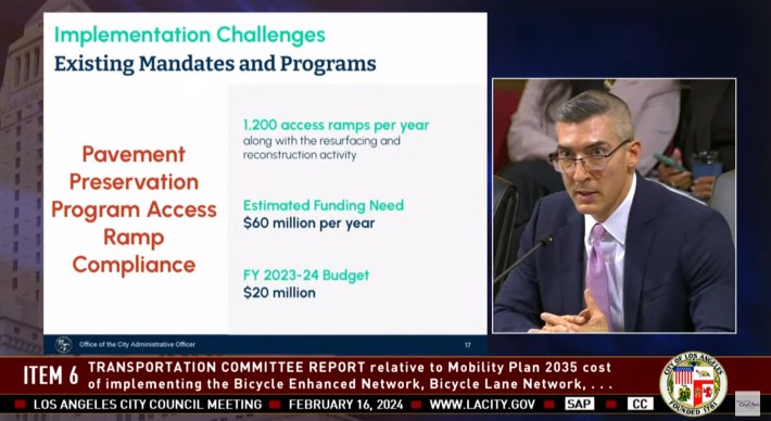 City Administrative Officer Matt Szabo: “In general, when we are conducting work and when there is work on the street, or when there is work on the sidewalk, we are required to ensure that the entirety of the sidewalk is ADA compliant. If we touch it, it has to be compliant.”