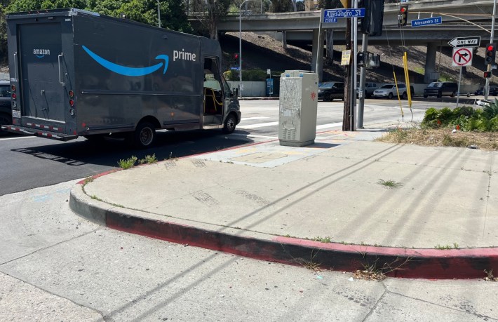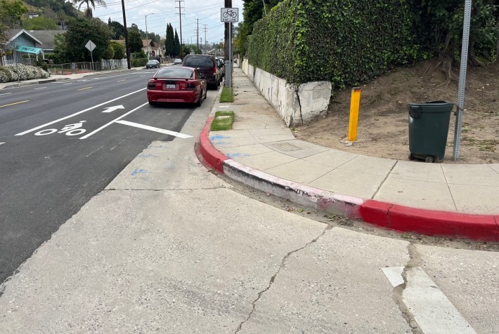 In early 2024, StreetsLA repaved Sierra Street in Happy Valley (adding what is perhaps the first HLA era bikeway). Sidewalks there – at Gillig Avenue and at Flora Avenue – were not made ADA compliant.