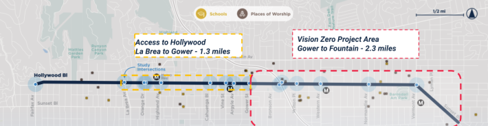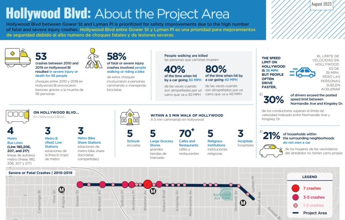 Today, the L.A. City Transportation Department (LADOT) shared a few additional details about their Hollywood Boulevard Safety and Mobility Project. The Vision Zero project is designed to reduce deaths and injuries from car crashes.