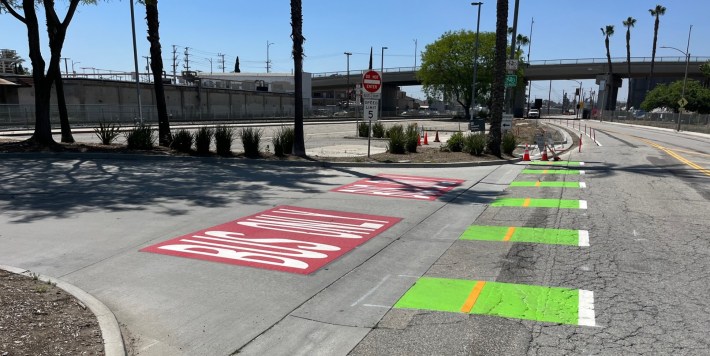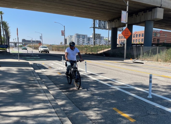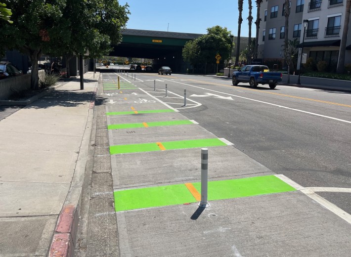 A portion of Burbank’s Front Street protected bikeway is already open. Construction continues on the northwest half of the mile-long project.