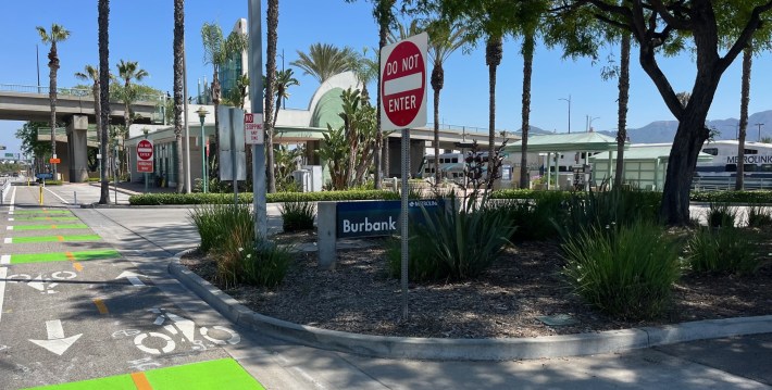The newly protected lanes make an important connection to the Downtown Burbank Metrolink Station (which also serves a bus hub), though that station is in a fairly out-of-the-way area, separated from downtown by the recently widened 5 Freeway. Front Street and the station are further isolated by train tracks and the Burbank Wash.