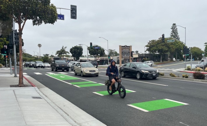 During a recent resurfacing project, the city of Redondo Beach extended and upgraded bike lanes on Torrance Boulevard. The lanes now extend from Pacific Coast Highway to the city limit (just east of Prospect Avenue) and feature green paint in conflict zones.
