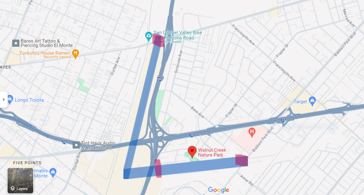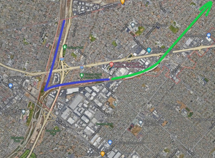 When phase 3 eventually breaks ground in late 2025, the trail will be extended 2.8 miles up the concretized portion of the wash (parallel to Vineland Avenue) to the city’s northern boundary at Arrow Highway, with more connections to pocket parks along the way. At that point, the greenway will connect commuter cyclists to the city’s major employment centers: Kaiser Permanente, UPS’s San Gabriel Valley hub, and In-N-Out’s training facility.