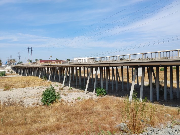 What’s finished now is a 2.5 mile path – completely separate from vehicular traffic – along the natural, earthen part of the wash in the city’s southern industrial corridor around the 10/605 Freeway interchange.