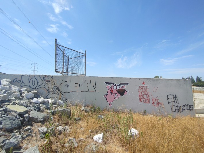 The sights along the river are classic Mid-Valley: bridges, underpasses, silos, the desolate riverbed, towering powerlines, bizarre discarded items, and of course, the San Gabriel Mountains under wide open skies. As always, use caution when exploring unfamiliar places and bring water.