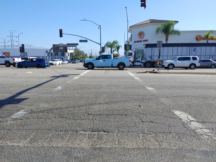The report also notes heavily cracked asphalt, inadequate truck turn paths, nonstandard lane widths and geometry, and noncompliant Americans with Disabilities Act (ADA) facilities. ADA upgrades will include curb ramps, sidewalks, and pedestrian pathways. As of now, on the north side of Valley under the 605 there is no sidewalk, but just a well-trodden dirt path.