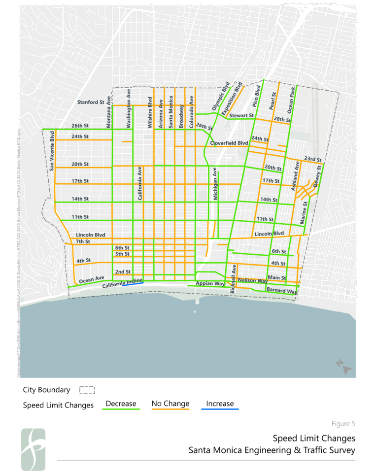 Santa Monica’s new limits came after a speed survey conducted earlier this year; this ensures the new speed limits would survive a legal challenge. The survey, conducted from January 27 through July 29, includes measurement of vehicular speeds along roadway segments to determine the speed of a majority of drivers.