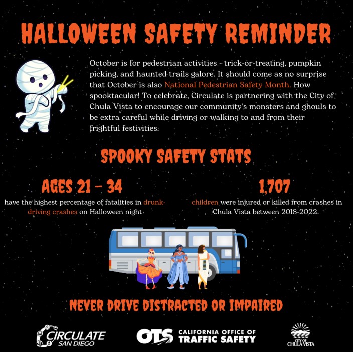 - Thursday 10/31 – It’s Halloween – the most dangerous day of the year for young pedestrians, generally accompanied by lots of blame-the-pedestrian safety campaigns (and an occasional good campaign too). Please don’t drive, but if you do, be extra careful – be on the lookout for trick-or-treaters and for drunk drivers. Please be especially careful if you’re backing out of a driveway.