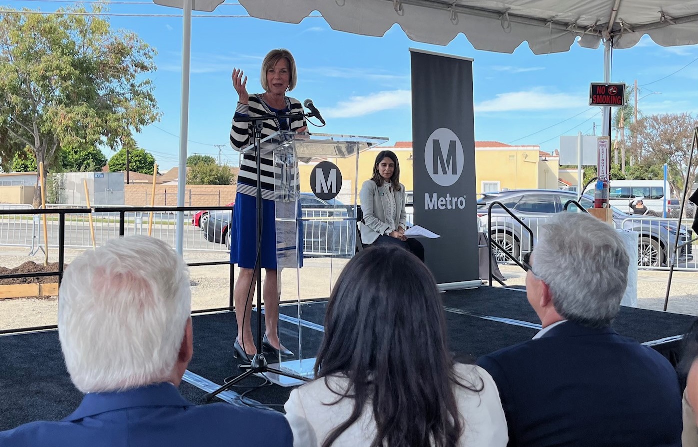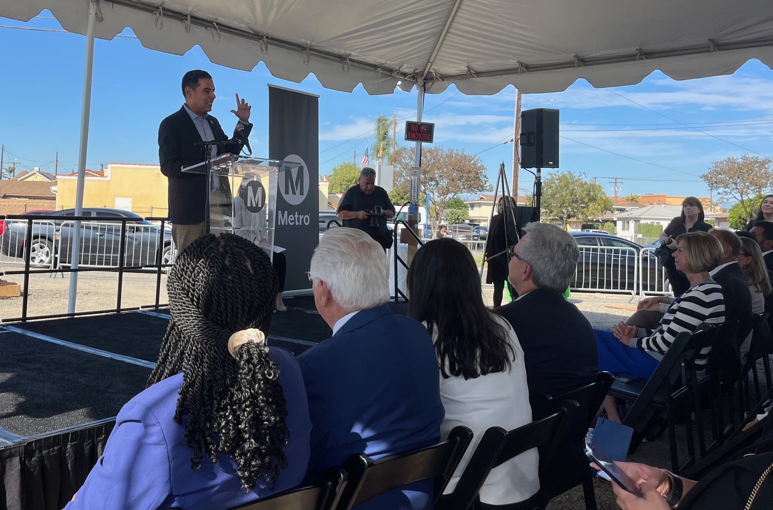 The ceremony took place at the site of the city of Artesia’s future Pioneer Boulevard Station, now a vacant rail right-of-way.