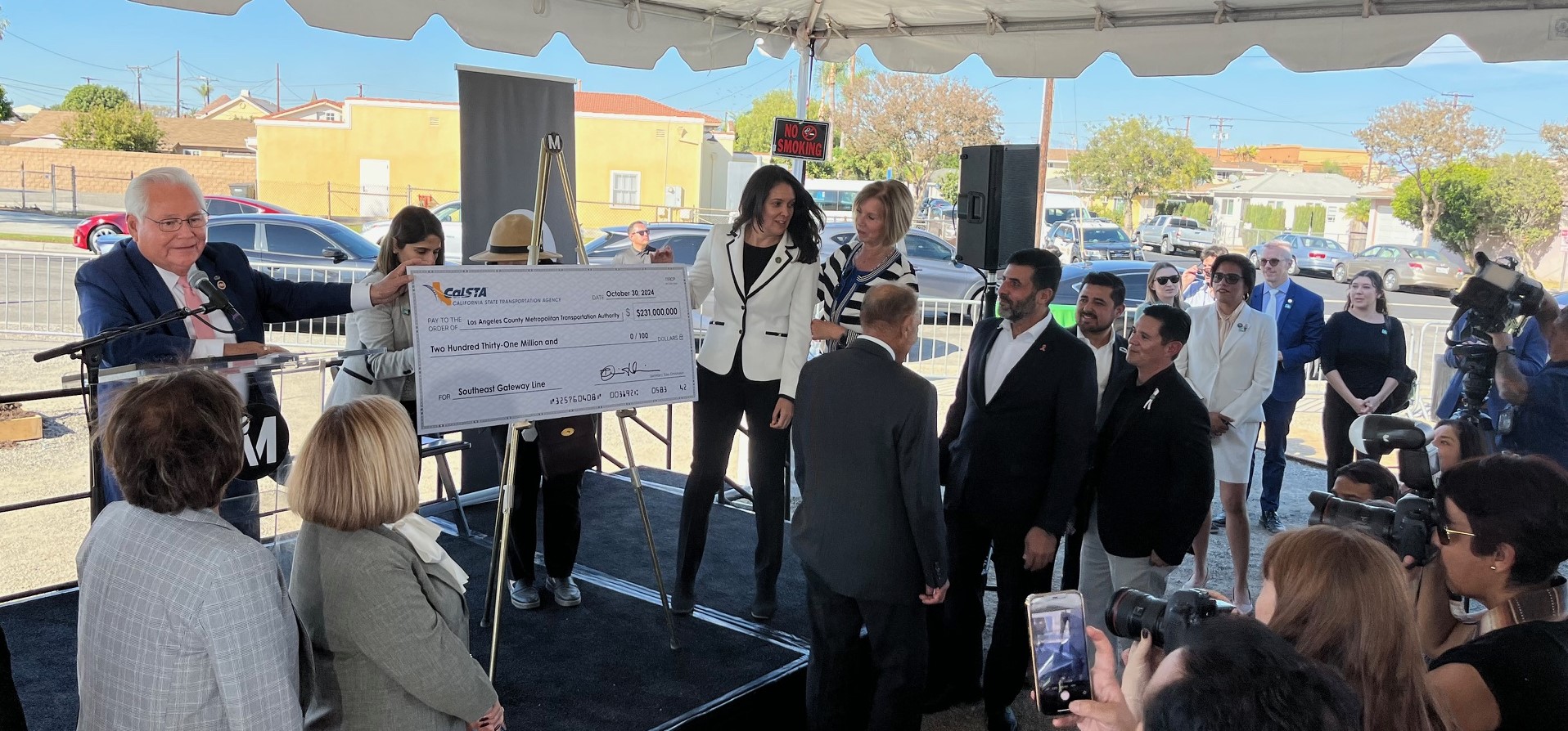“We are not just shovel-ready, we are putting those shovels in the ground!” County Supervisor and Metro Board Chair Janice Hahn proclaimed at yesterday’s groundbreaking celebration for Metro’s Southeast Gateway light rail line. The line, which will serve southeast L.A. County, is not yet fully funded, so the groundbreaking was for the key pre-construction phase of advance utility relocation.