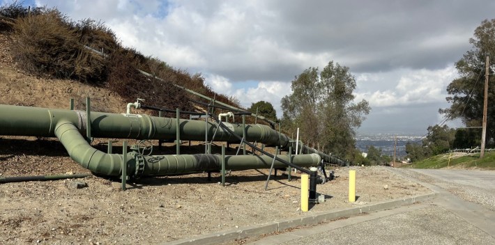 The Puente Hills Landfill was the second largest landfill in the United States. It operated from 1957 to 2013 and is storing 150 million tons of garbage. But Streetsblog didn’t smell or see any walking around the site last week. The top layer of soil is seven to fourteen feet deep, and the L.A. County Sanitation District remains on site to monitor for any issues, including any cracks that would need to be capped.