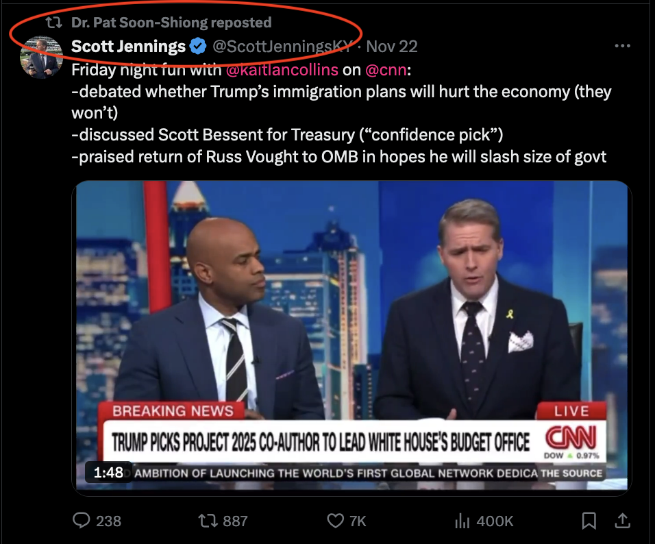 And in an increasingly less surprising move, the billionaire owner of the L.A. Times, Dr. Pat Soon-Shiong, reposted a clip of conservative CNN pundit Scott Jennings in which he downplays the negative impacts of mass deportation.