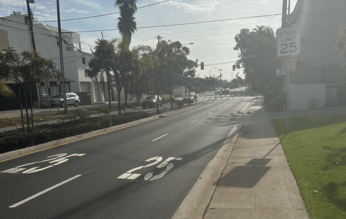 This segment of Neilson Way is one of 30 streets that will see changes in their posted speed limits as a result of the survey. All but one will see lowered limits. The new limits were set by Santa Monica DOT and approved by the City Council after a speed survey conducted earlier this year; this ensures the new speed limits would survive a legal challenge. The survey, conducted from January 27 through July 29, included measuring vehicular speeds along roadway segments to determine how fast drivers were traveling.