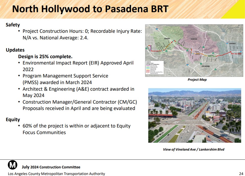 Since 2022, Metro has awarded two smaller contracts for NoHo-Pasadena BRT project management and architecture/engineering.