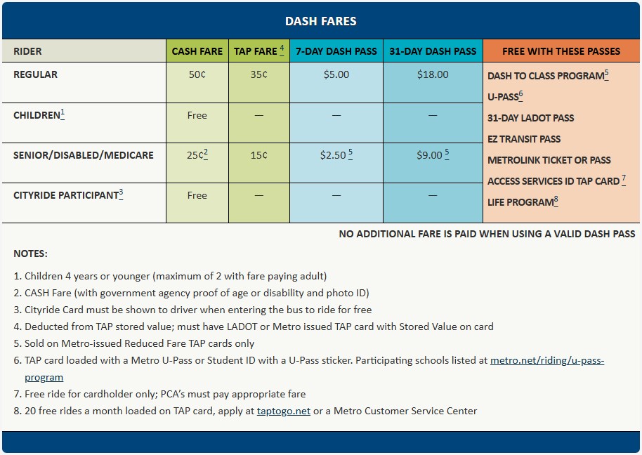 Updated January 10: LADOT Transit announced that resumption of DASH fares scheduled to begin January 11, 2025 has been postponed until further notice due to the emergency situation caused by the wildfires. Information at DASH alerts.