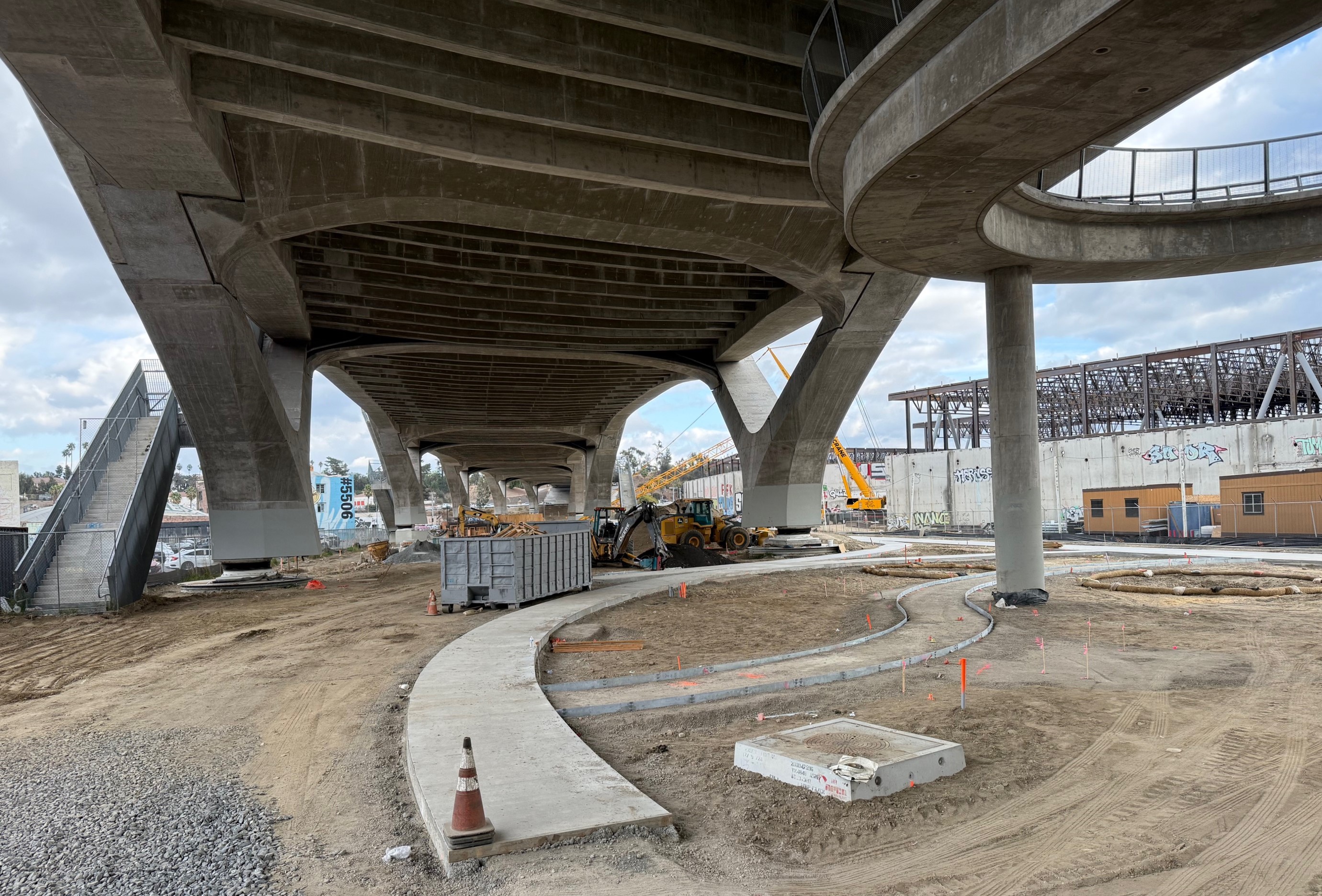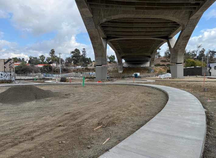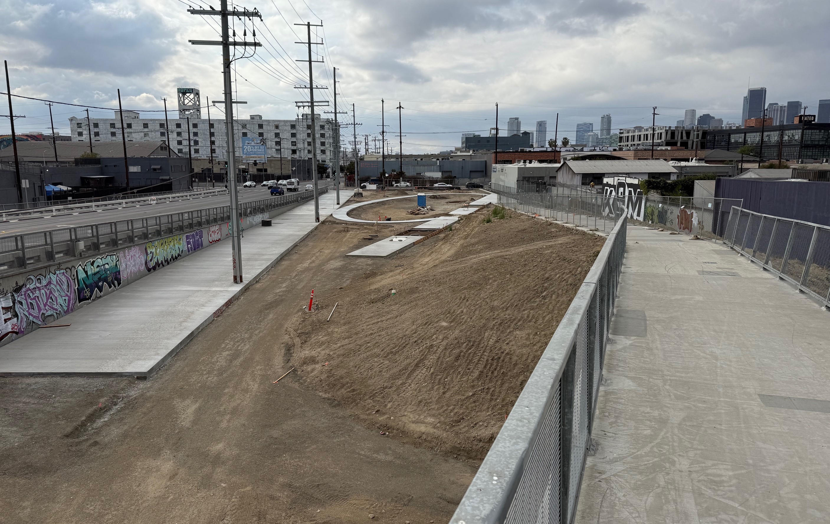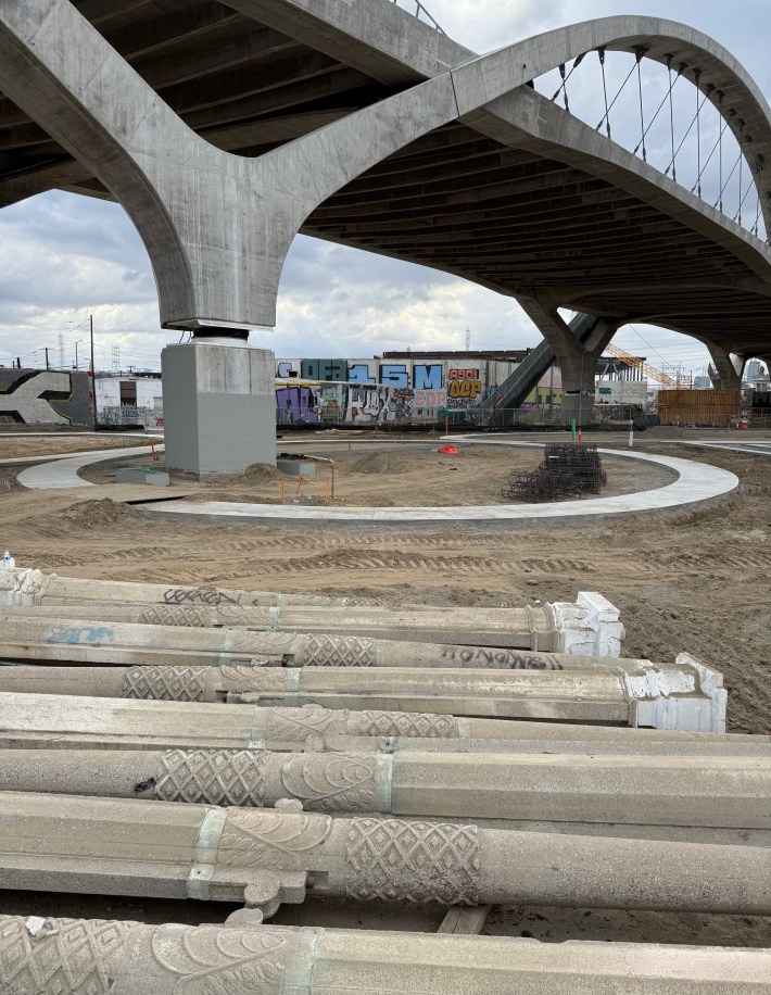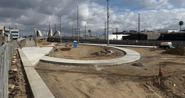 It’s not looking green yet, but the city of Los Angeles is making a lot of progress on construction of a new 12-acre park underneath and along the 6th Street Viaduct.