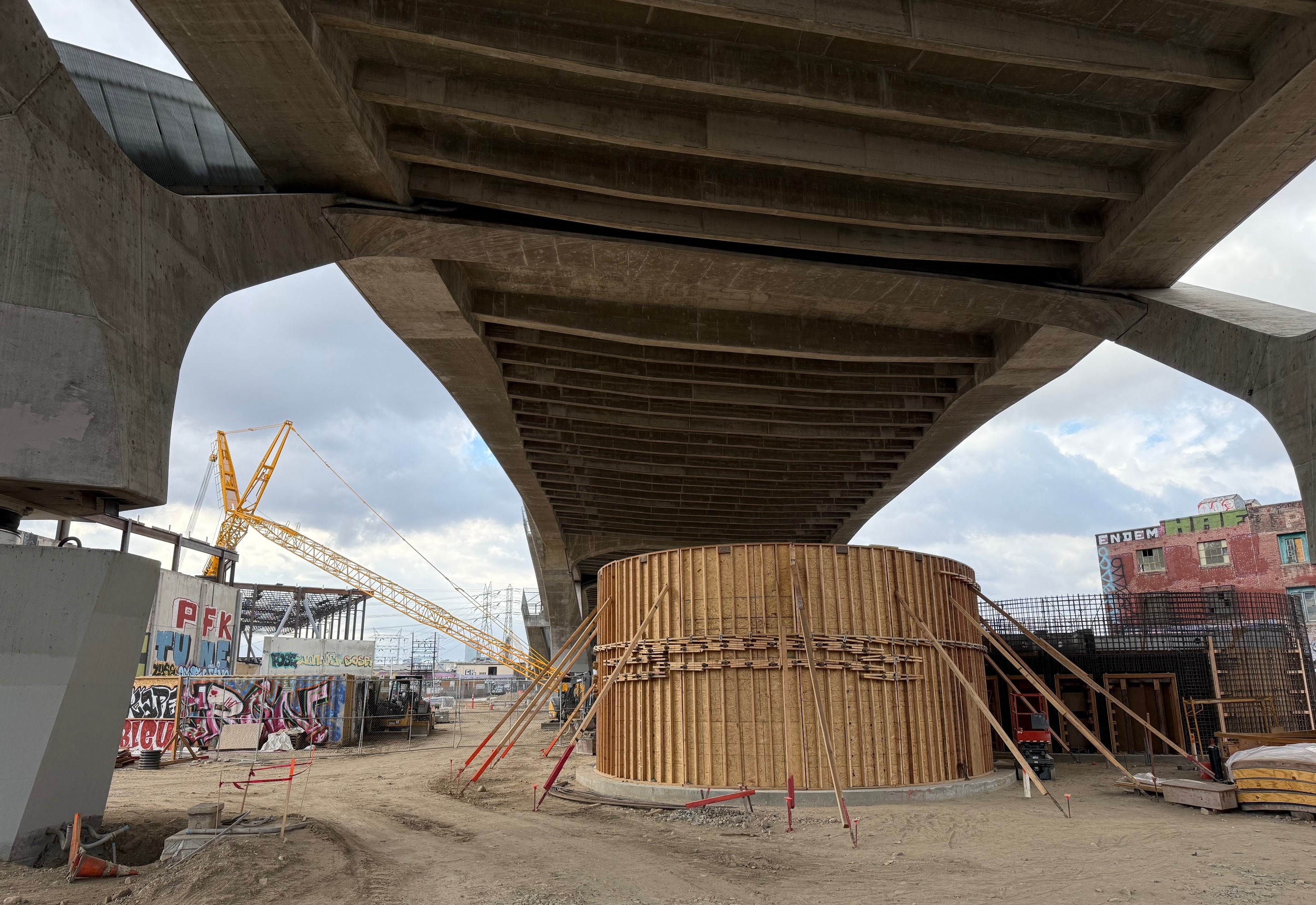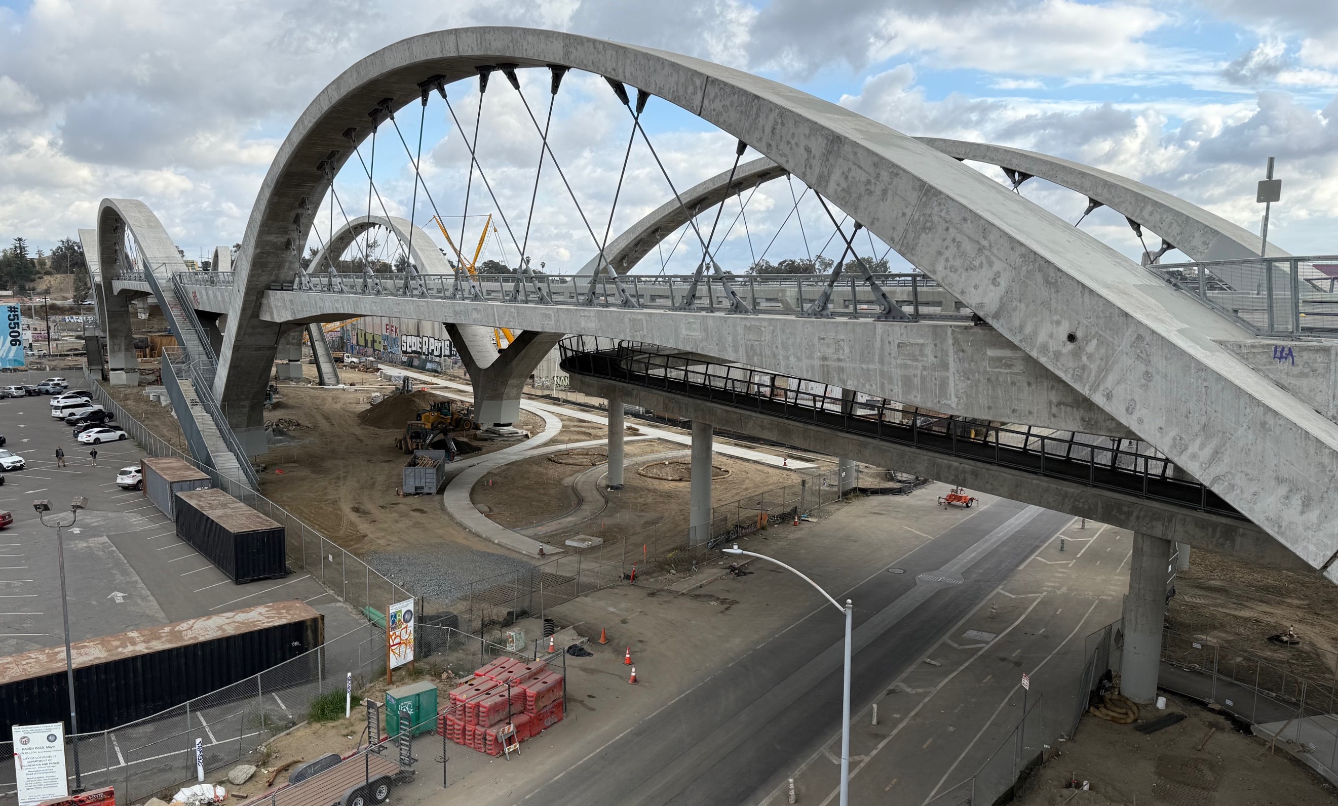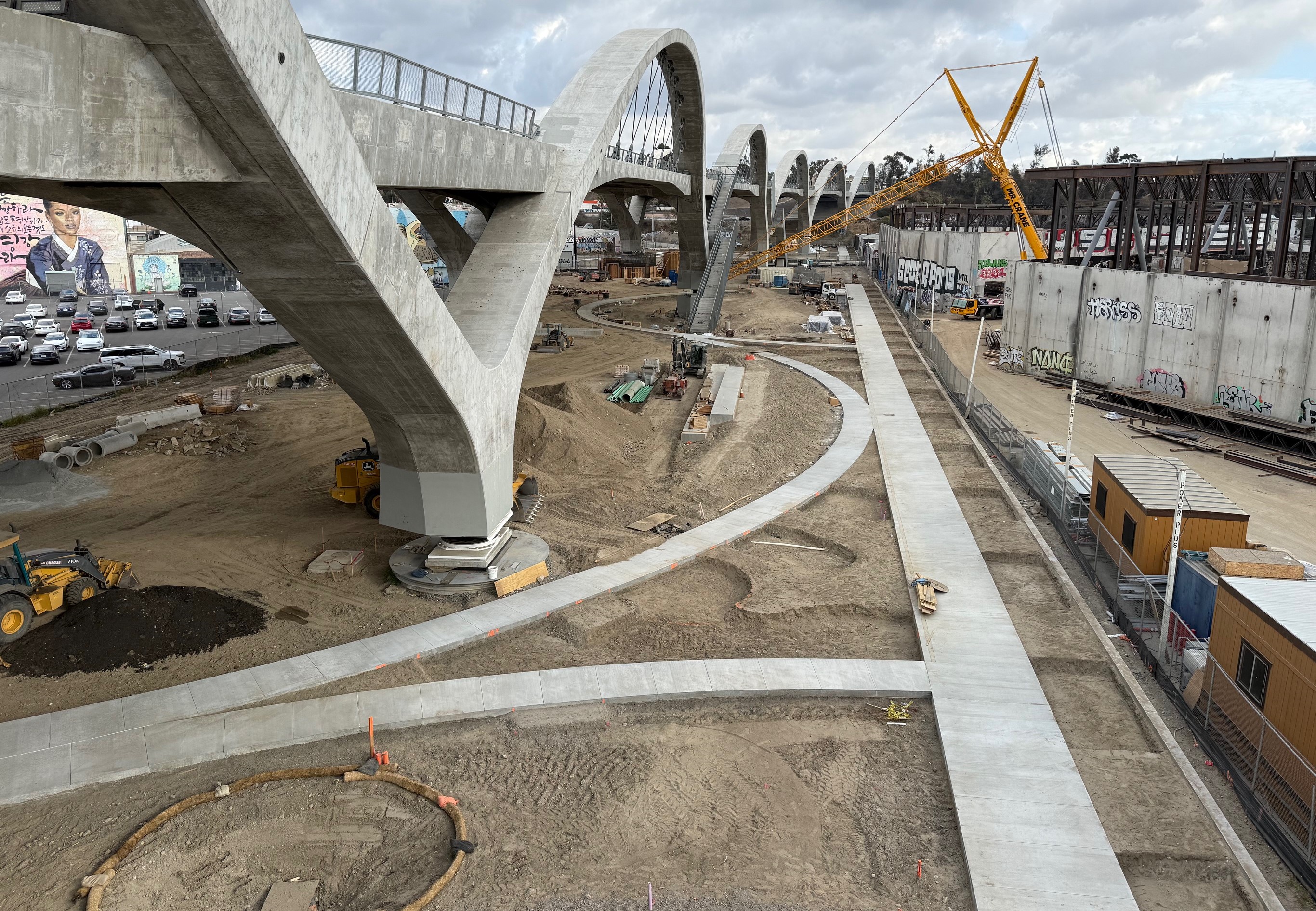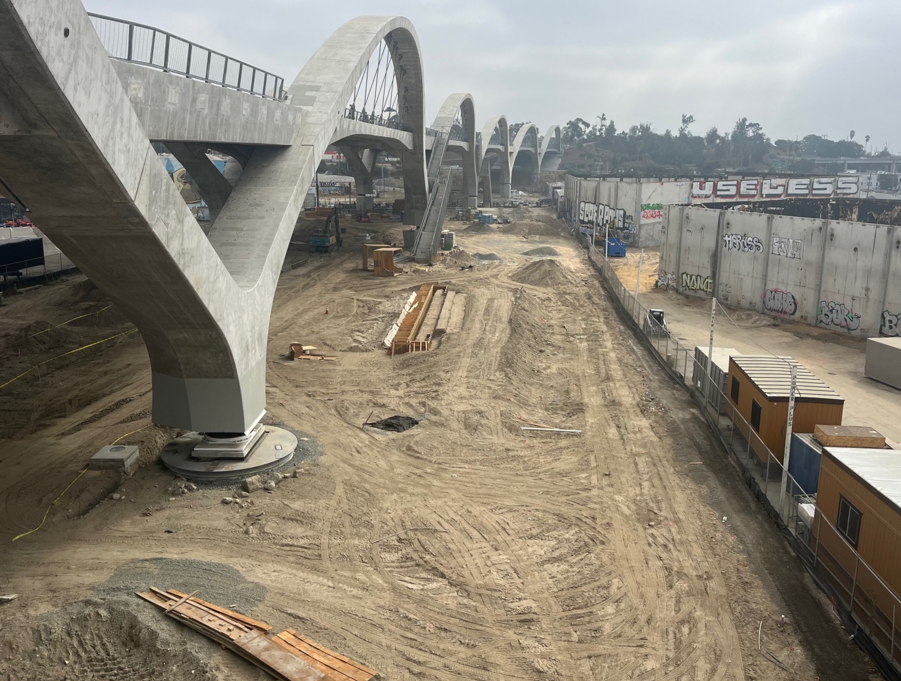It’s not looking green yet, but the city of Los Angeles is making a lot of progress on construction of a new 12-acre park underneath and along the 6th Street Viaduct.