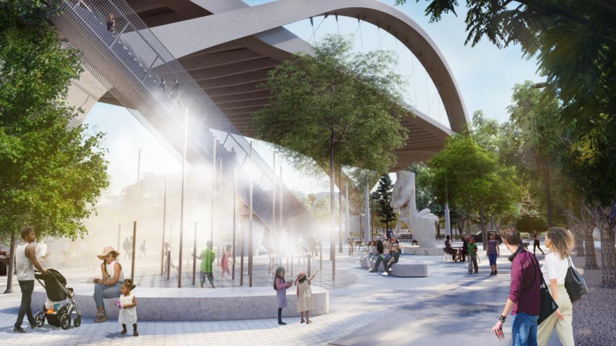 The Sixth Street PARC (Park, Arts, River & Connectivity) Project will be located under the monumental new Sixth Street Viaduct, which opened in July 2022. SBLA reported on early PARC planning underway in 2017. PARC construction kicked off in late 2022.