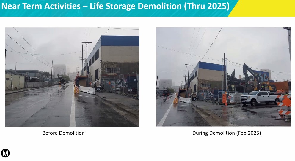 - Early construction is underway for the new Union Station run-through tracks project (LinkUS). Metro shared photos of building demolition taking place at the northeast corner of Center Street and Commercial Street southeast of Union Station. Demolition is visible from from the A Line train or the El Monte busway station.