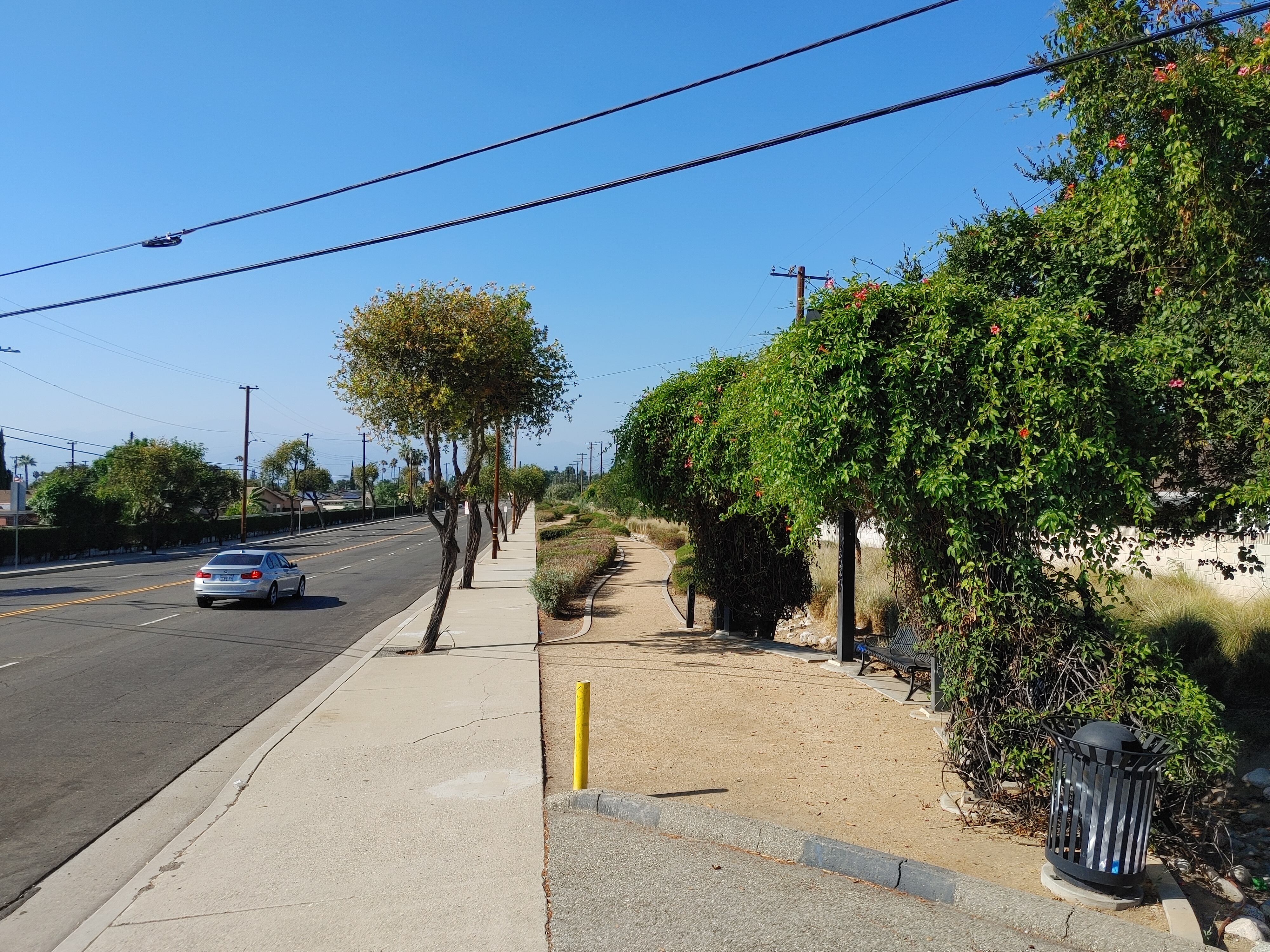 Greening projects aren’t common in the area, but over time this path has garnered users, especially in the pandemic era. It figures, because it takes you to the decades-old Industry Hills multi-use paths on Temple Avenue.