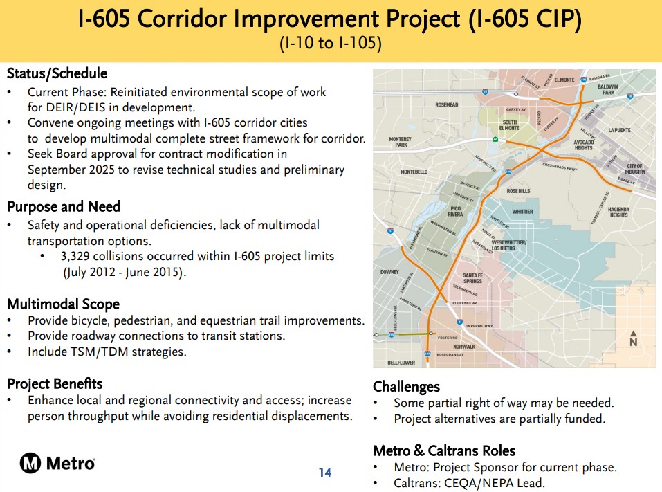 Last month’s Metro Board Planning Committee presentation listed a 605CIP “challenge” that “some partial right of way may be needed.”