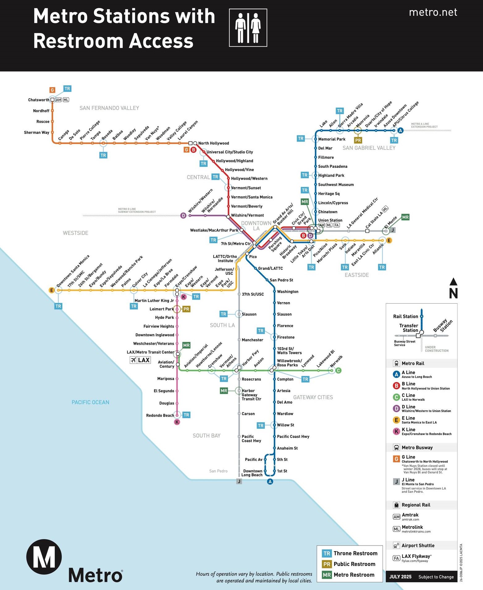 Metro announced five recently installed Throne bathrooms at stations: Atlantic (E Line), Chatsworth (G Line), Crenshaw (C Line), Redondo Beach (K Line) and Slauson (J Line).