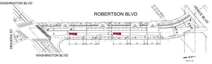 Construction is well underway on Culver City's Robertson Blvd Complete Street Project. The bike/walk/transit project is located on one 700-foot-long block of Robertson Boulevard - from Venice Boulevard to Washington Boulevard - immediately south of the Metro E Line Culver City Station.
