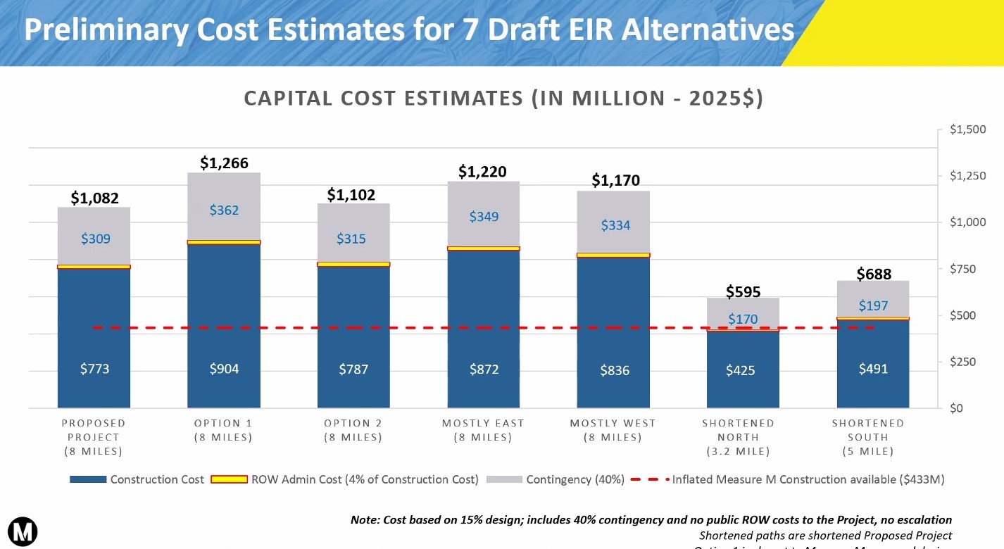 This means that Metro’s ~$430 million (the above-mentioned Measure M funding adjusted for inflation) is no longer enough to build the entire project, now expected to cost around ~$1 billion.