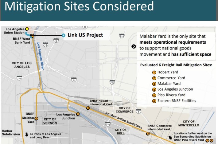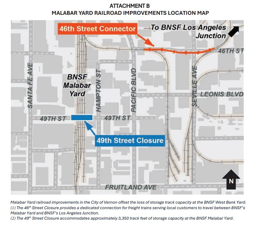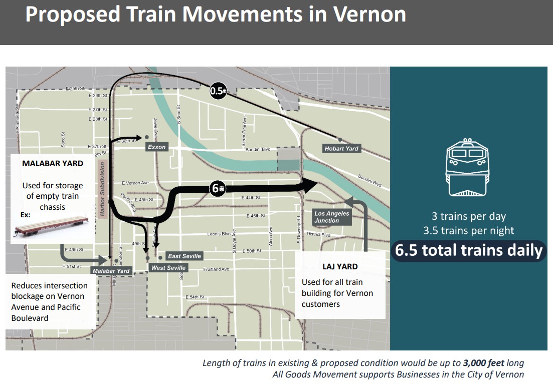 At this week’s Metro committee meetings, Vernon representatives noted that BNSF has long sought these changes at Malabar Yard, but the city refused to permit them, citing impacts to air quality and to neighboring businesses. Vernon representatives disputed Metro claims of reduced train activity, requesting that BNSF actually commit to that in writing, via some kind of binding operations plan.