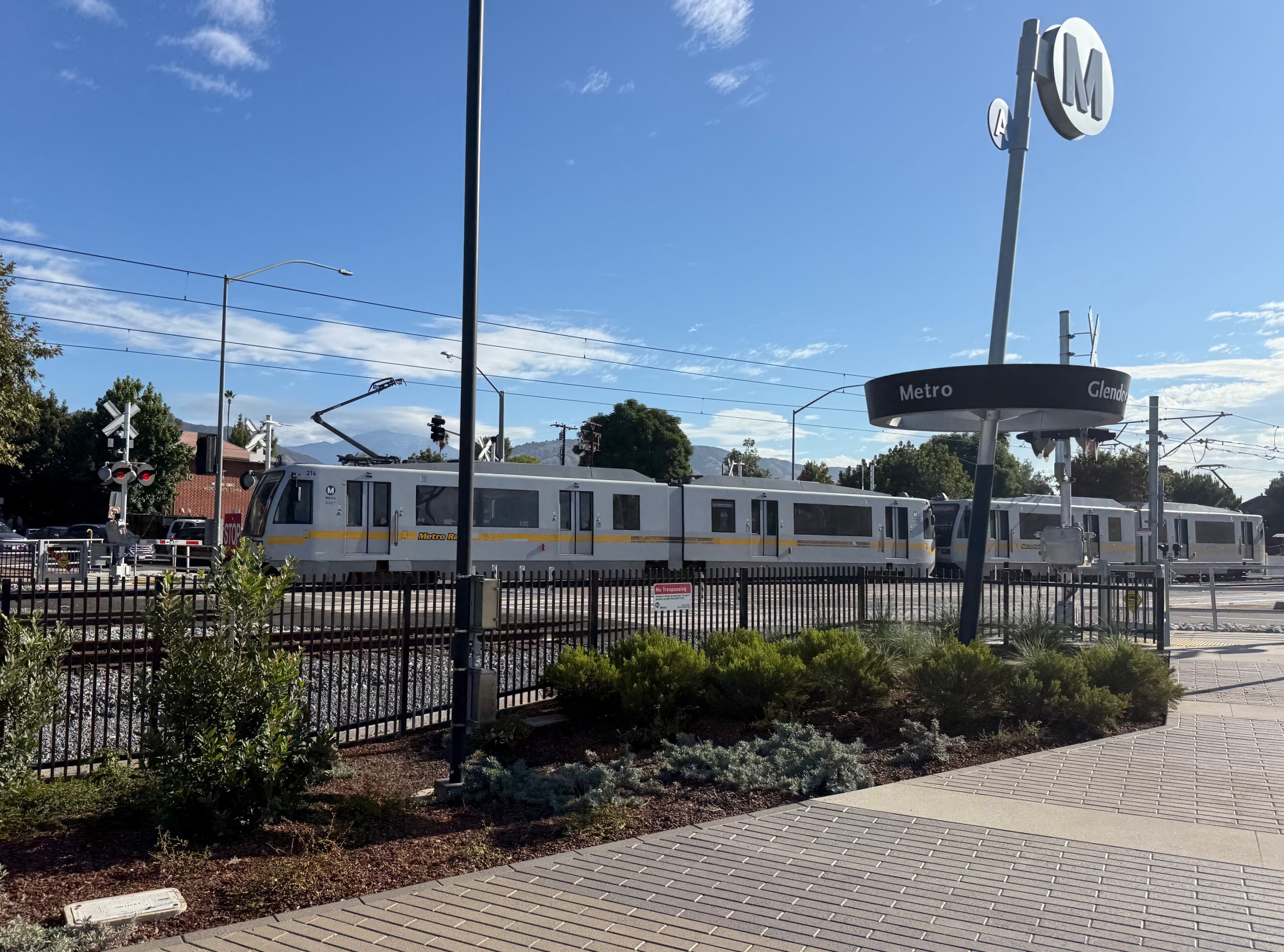 We’re here at the brand-new Glendora Metro A Line Station. It’s one of four new stations. Today we’re going to take a sampling tour of the four new stops on the A Line—the former Gold Line, or Foothill Gold Line as they called it—and see what you can walk to near the stations, what’s interesting about each one, and get a sense of what you can expect when you ride the new train.