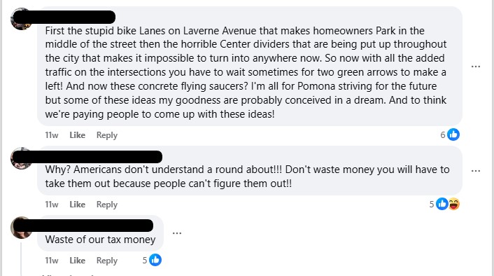 Pomona is still wrapping up construction, and the new roundabouts already have their critics. One Facebook commenter termed them "concrete flying saucers."