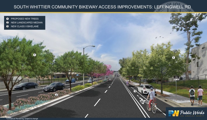 Supervisor Janice Hahn and the L.A. County Department of Public Works recently announced the approval of the $27 million South Whittier Community Bikeway Access Improvements project, which will install 3 miles (6 lane-miles) of new bike lanes on Leffingwell Road and Valley View Avenue.