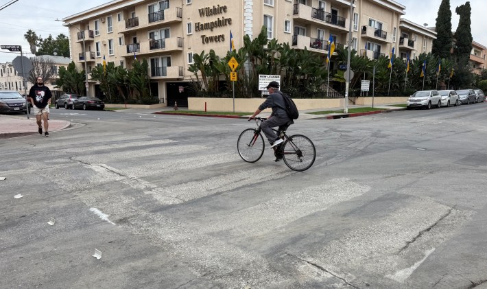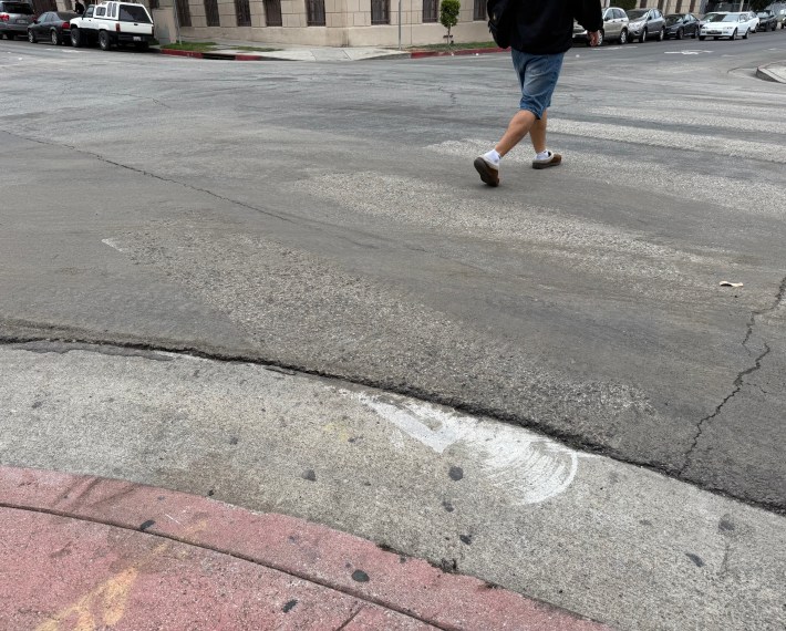 The good news is that the city will reinstall the crosswalks tomorrow, including an "interim traffic circle." Per Transportation Department (LADOT) Spokesperson Colin Sweeney: