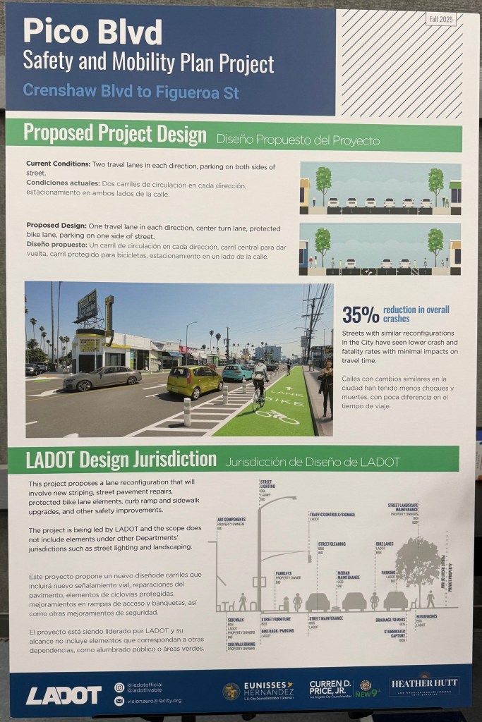 Last night LADOT hosted a community open house for its Pico Boulevard Safety and Mobility Plan Project. A virtual project open house will be held next week: from 6-8 p.m. on Monday, November 17. Meeting details at LADOT flier.