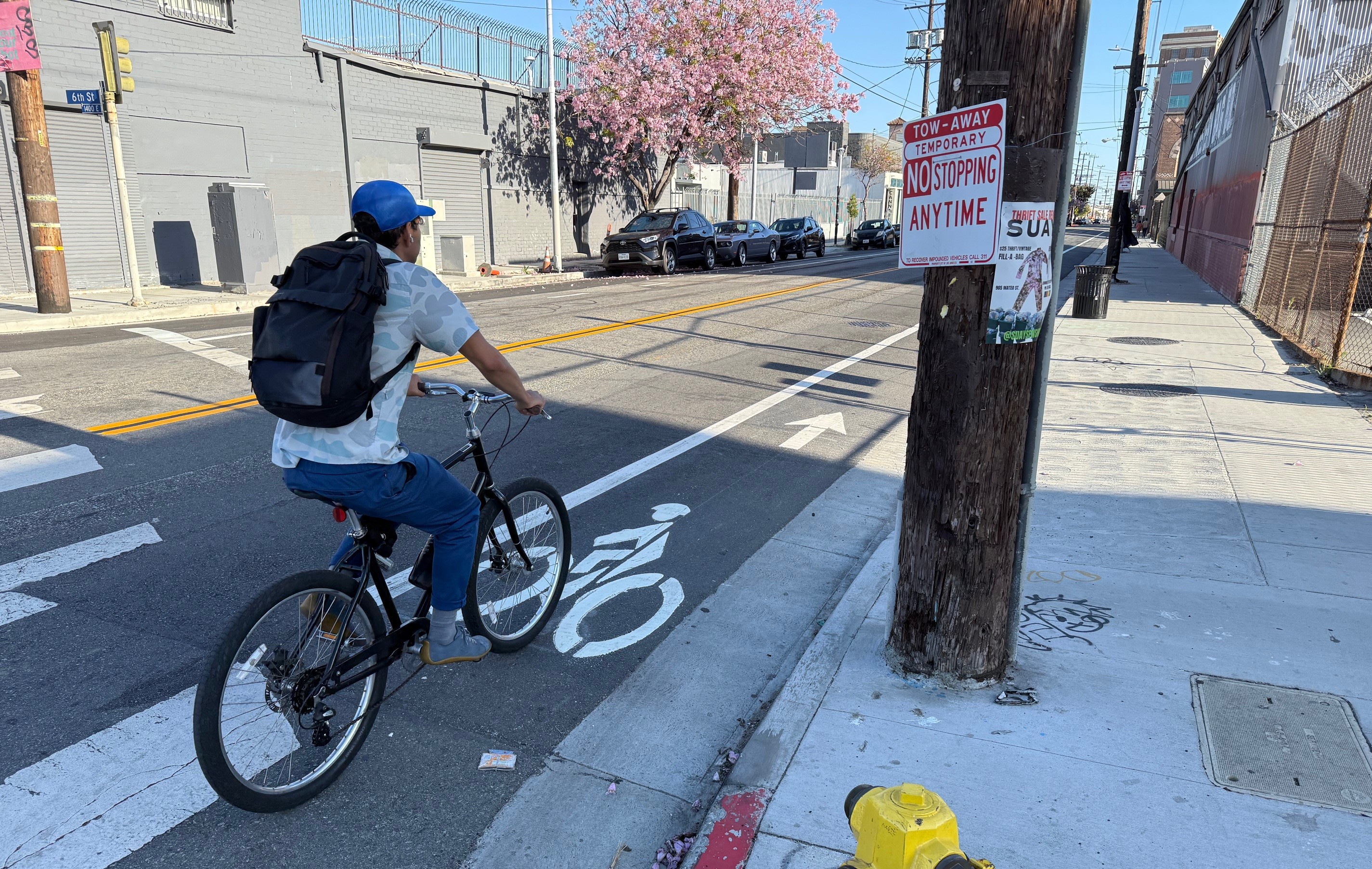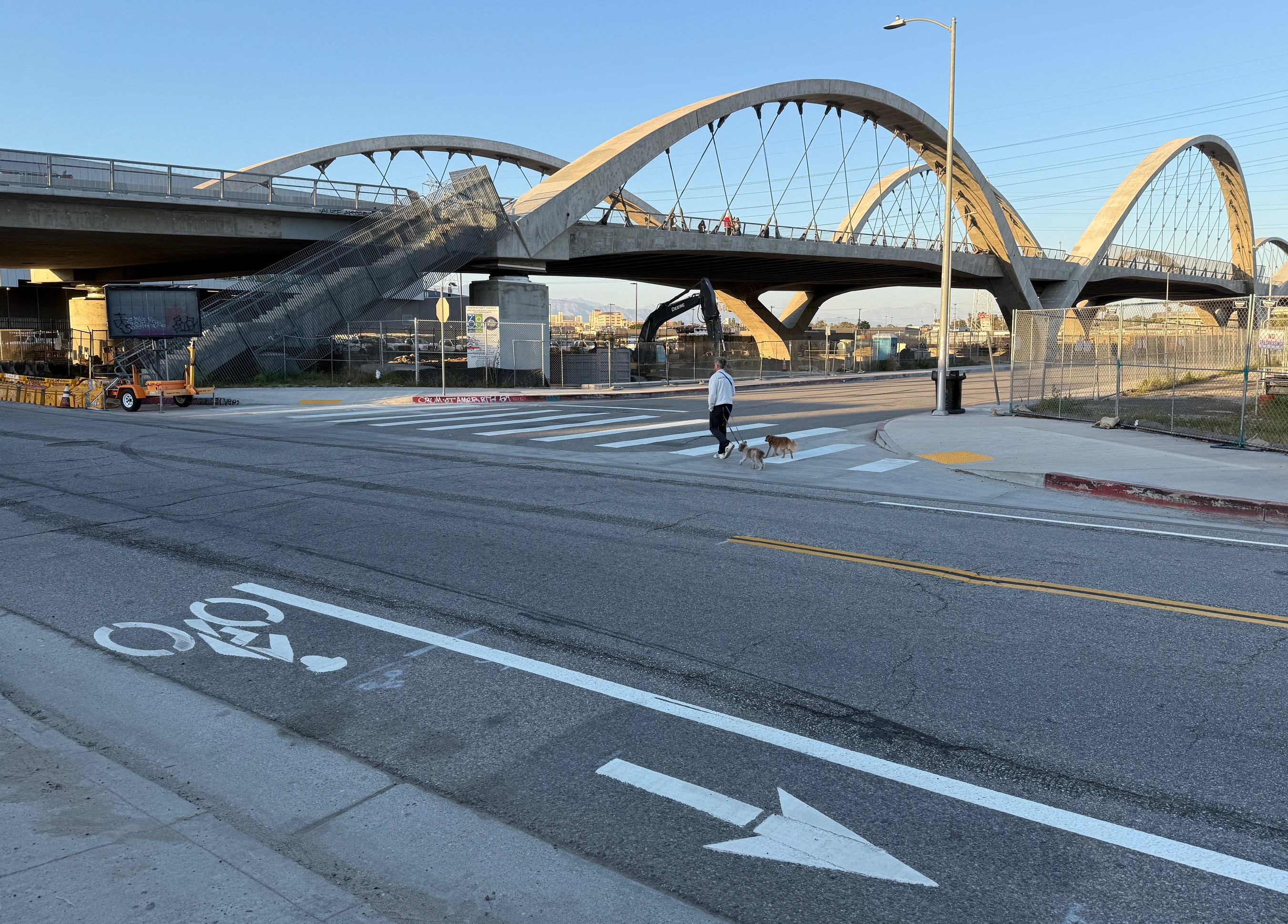 The city is now wrapping up construction for its Downtown L.A. Arts District Pedestrian and Cyclist Safety Project [see description page 6], funded by a state Active Transportation Program (ATP) grant. Near the west end of the new 6th Street Bridge, this project added new bike lanes on Santa Fe Avenue (partially protected) and on Mateo Street, both of which were open as of April 2025.