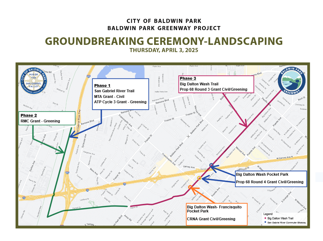 The city is planning several additional greenway phases. Phase 3 of the greenway includes two pocket parks, and an additional 2.8 miles of walk/bike path which will allow users to get across town while avoiding the 10 and 605 Freeways and most of their surface street traffic.