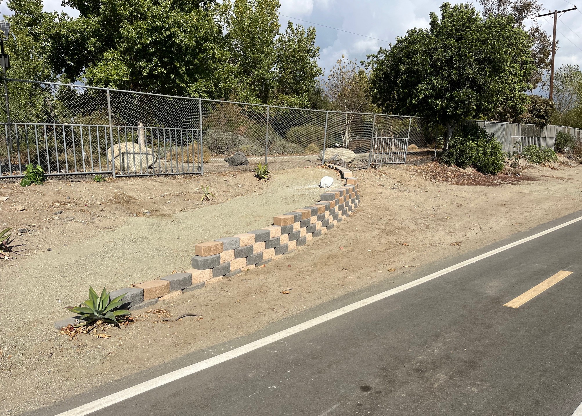 This current stage of the project (Phase 2) will be finished in January. Phase 2 includes the ramp/stair entry point, plus additional landscaping, seating, and signage.