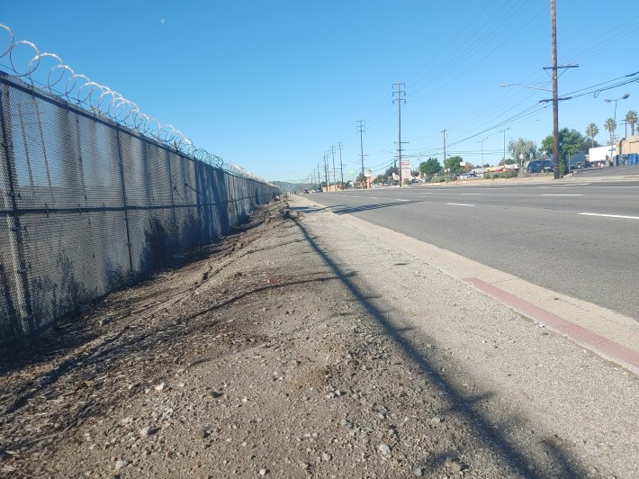 This area of Valley Boulevard has a rough reputation with cyclists and pedestrians, as it lacks sidewalks on both sides. Quieter residential Inyo Street is a popular alternative for cyclists.