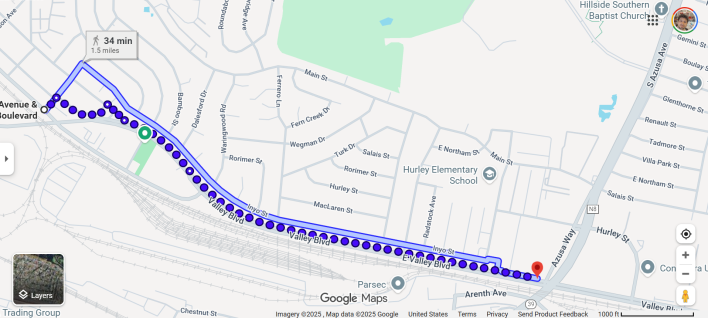 Bus service is on Valley, and the Azusa Avenue bridge is key for cyclists working in Industry. So Valley makes sense as the place to build safe, new facilities serving bike commuters and transit riders.