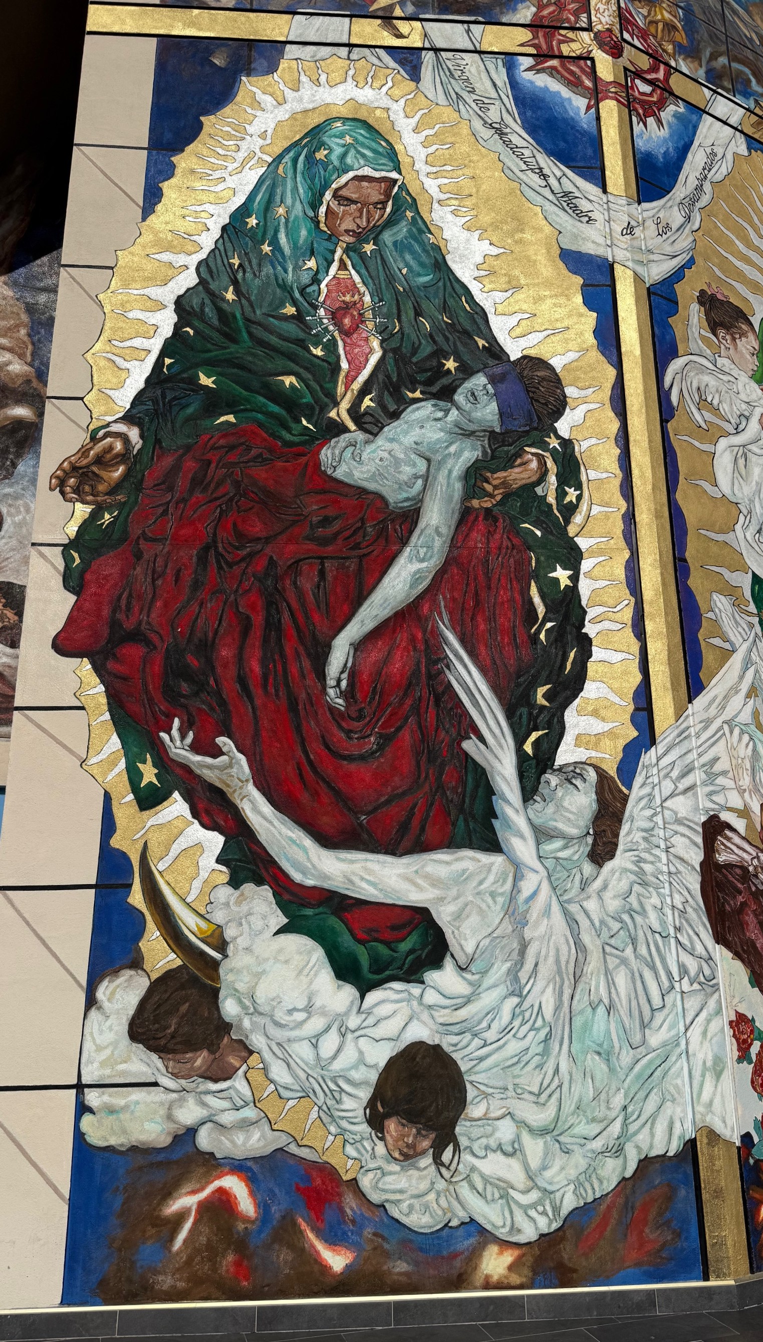 Hubs were full of music, booths, vendors, and activities – especially at City Terrace Park and at Coyolxauhqui Plaza. That plaza area features several remarkable murals, including the recently restored George Yepes pieta at St. Lucy’s Catholic Church.