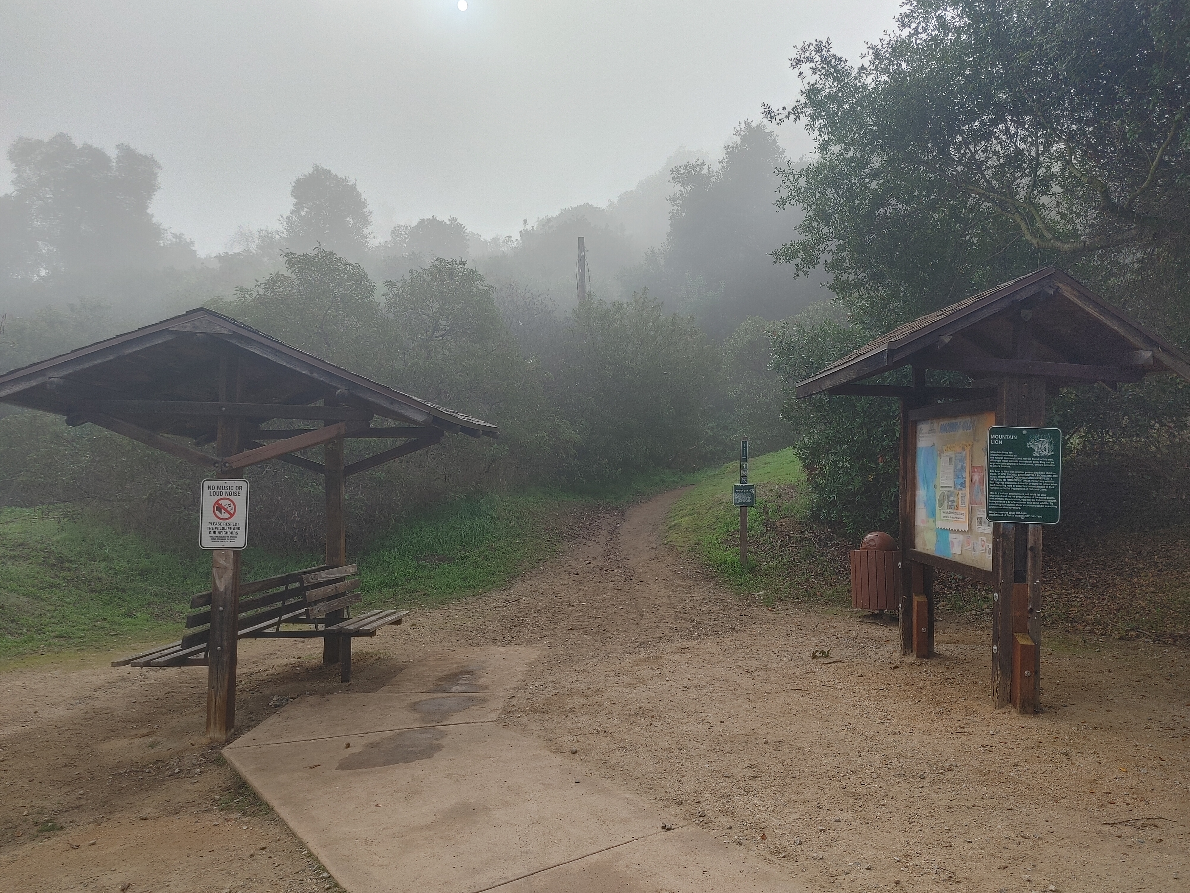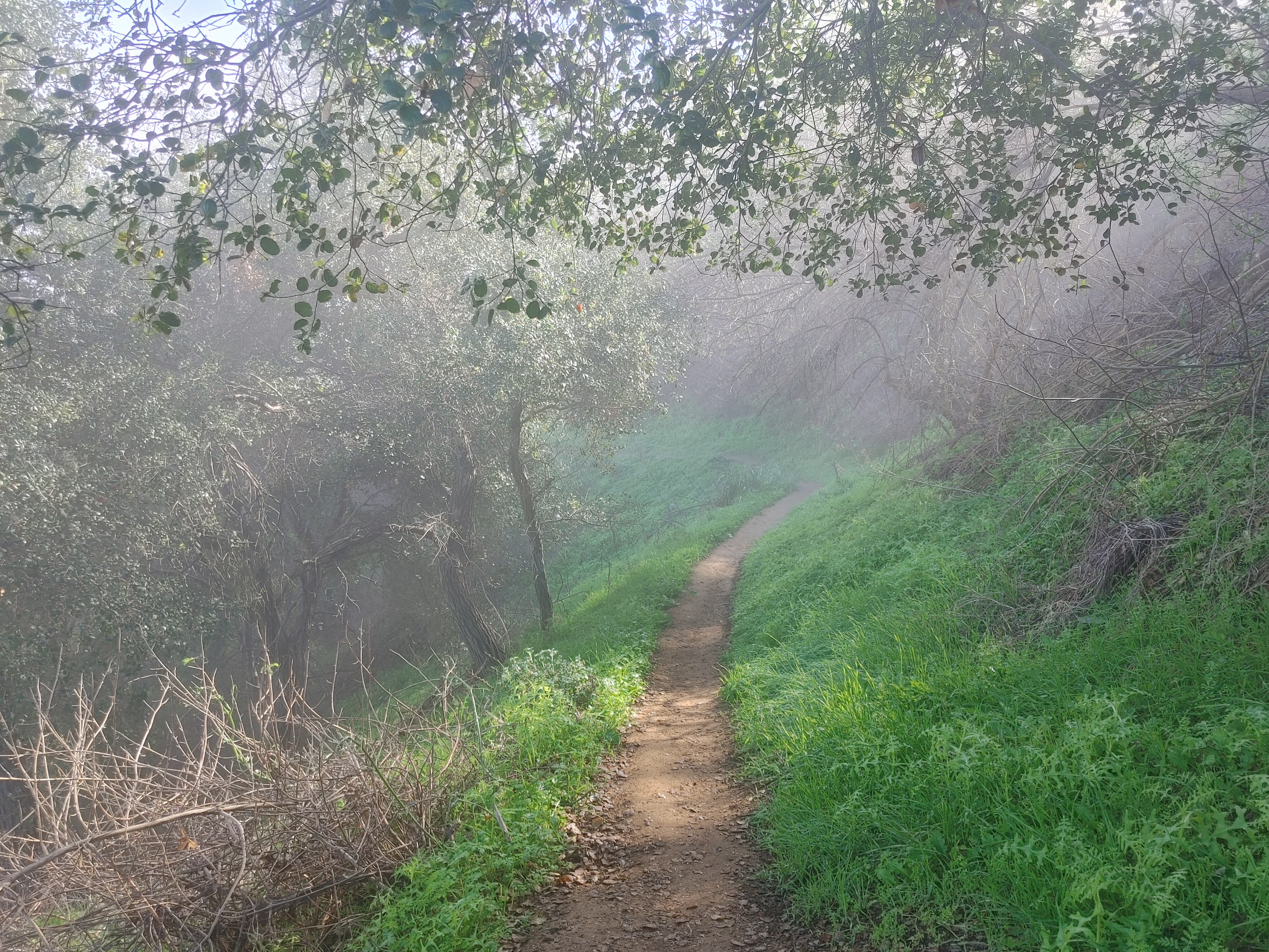The 2.26 mile Coyote-Ahwingna Trail loop at the Hacienda Hills trailhead is a nice place for a misty morning walk. This is a less travelled pocket of the Puente Hills.