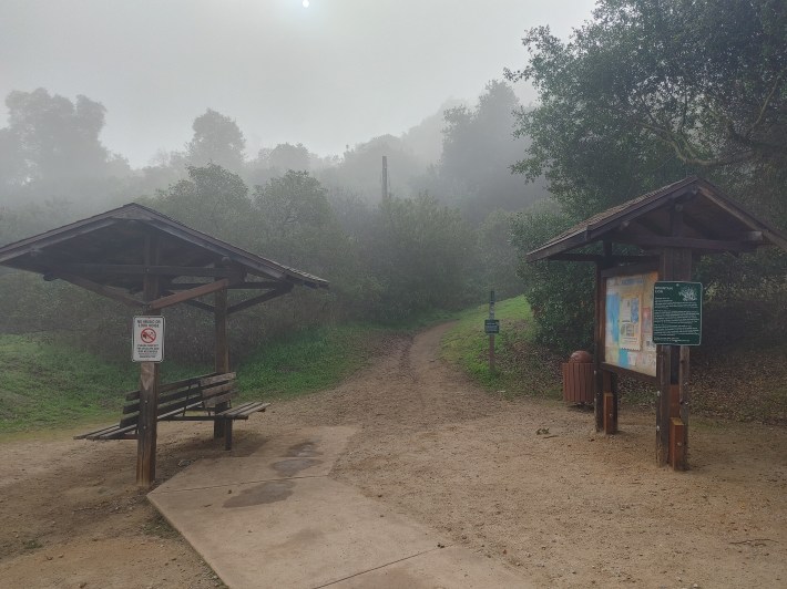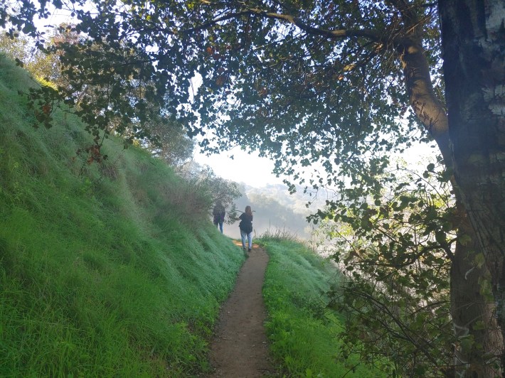 The 1.35 mile Coyote Trail is full of shady switchbacks, and climbs 570 feet. It’s fairly steep, but nothing here is too scrabbly. The enclosed tree cover and dewy path here really adds to the velvety feeling of the morning fog. The path is on the skinnier side, and is meant for walking only.