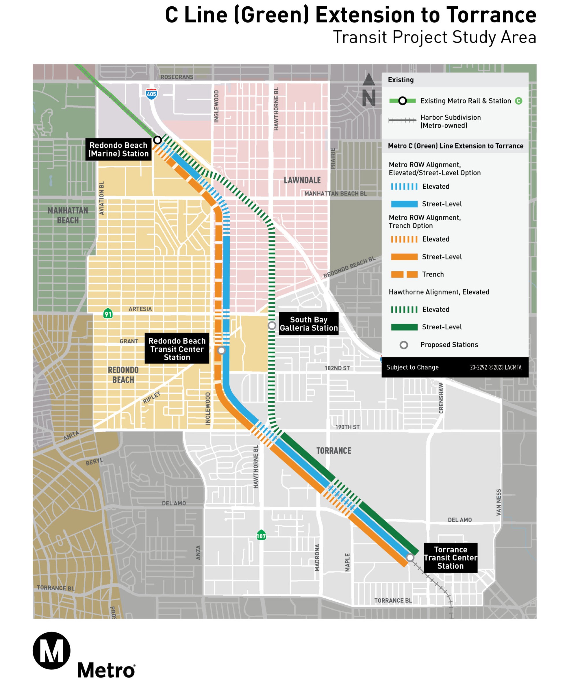 The project is called the Metro C Line Extension to Torrance – though that part of the C Line (formerly the Green Line) now operates as the K Line.