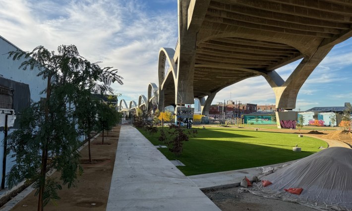 It’s been a year since Streetsblog L.A. last shared 6th Street PARC (Park, Arts, River & Connectivity) construction photos; see January 2025 post.