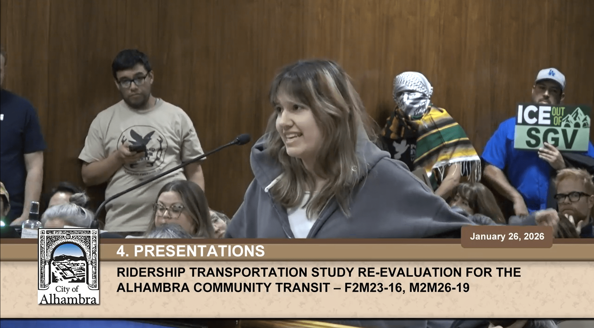 The council chambers on Monday (January 26) had been a packed house, not because of the ACT bus, but due to an incident which took place a week before where a local activist who was tailing Border Patrol agents on the road was pulled over by Alhambra Police. This followed with a brief confrontation by Border Patrol before the two parties were separated without arrests occurring.